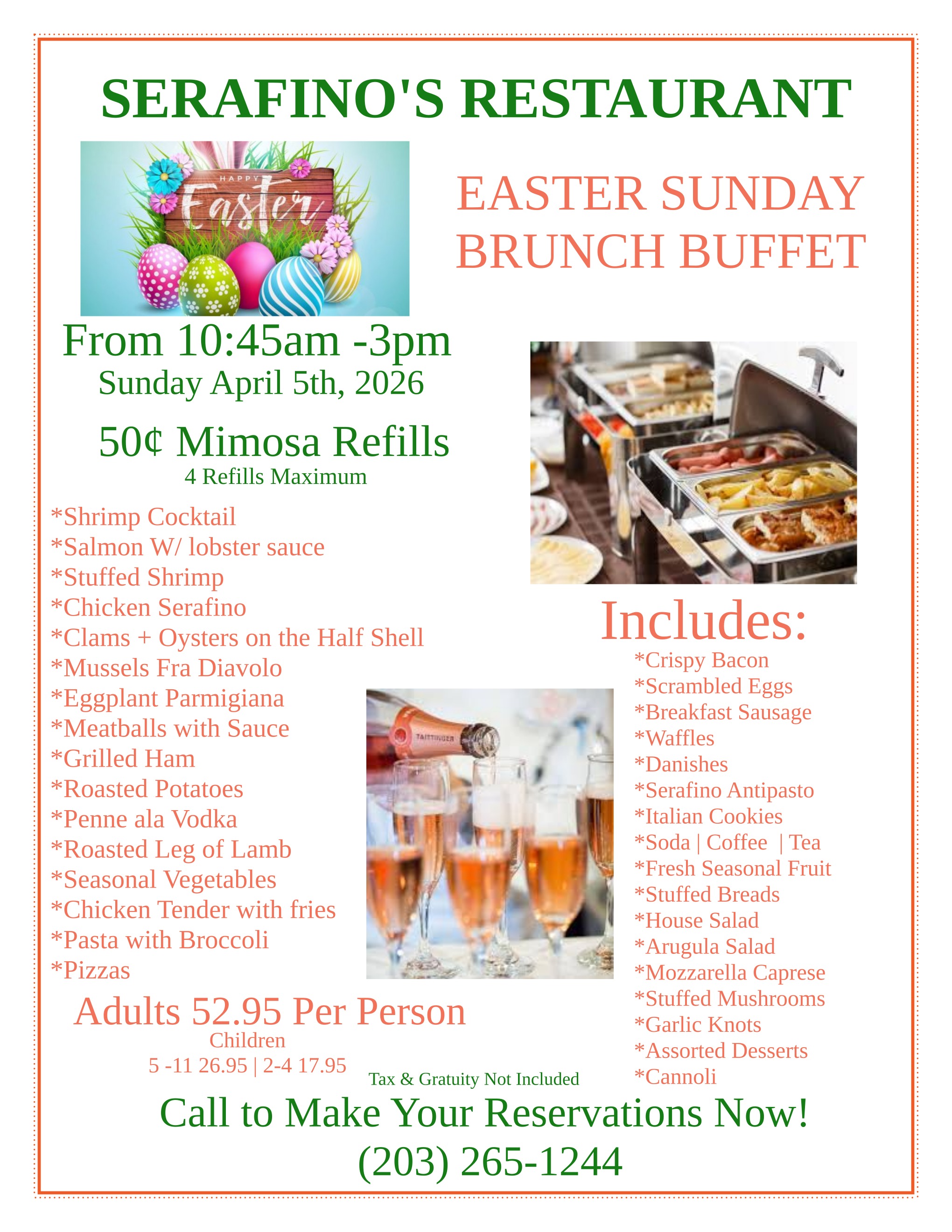 From intimate dinners to grand celebrations, Serafino's offers tailored catering services to make your event unforgettable. Our expert team will craft a personalized menu with the finest ingredients, ensuring every dish delights your guests. Whether it's on-site or drop-off catering, we handle every detail, leaving you to enjoy your special moments. Let us bring the taste of Italy to your next event!